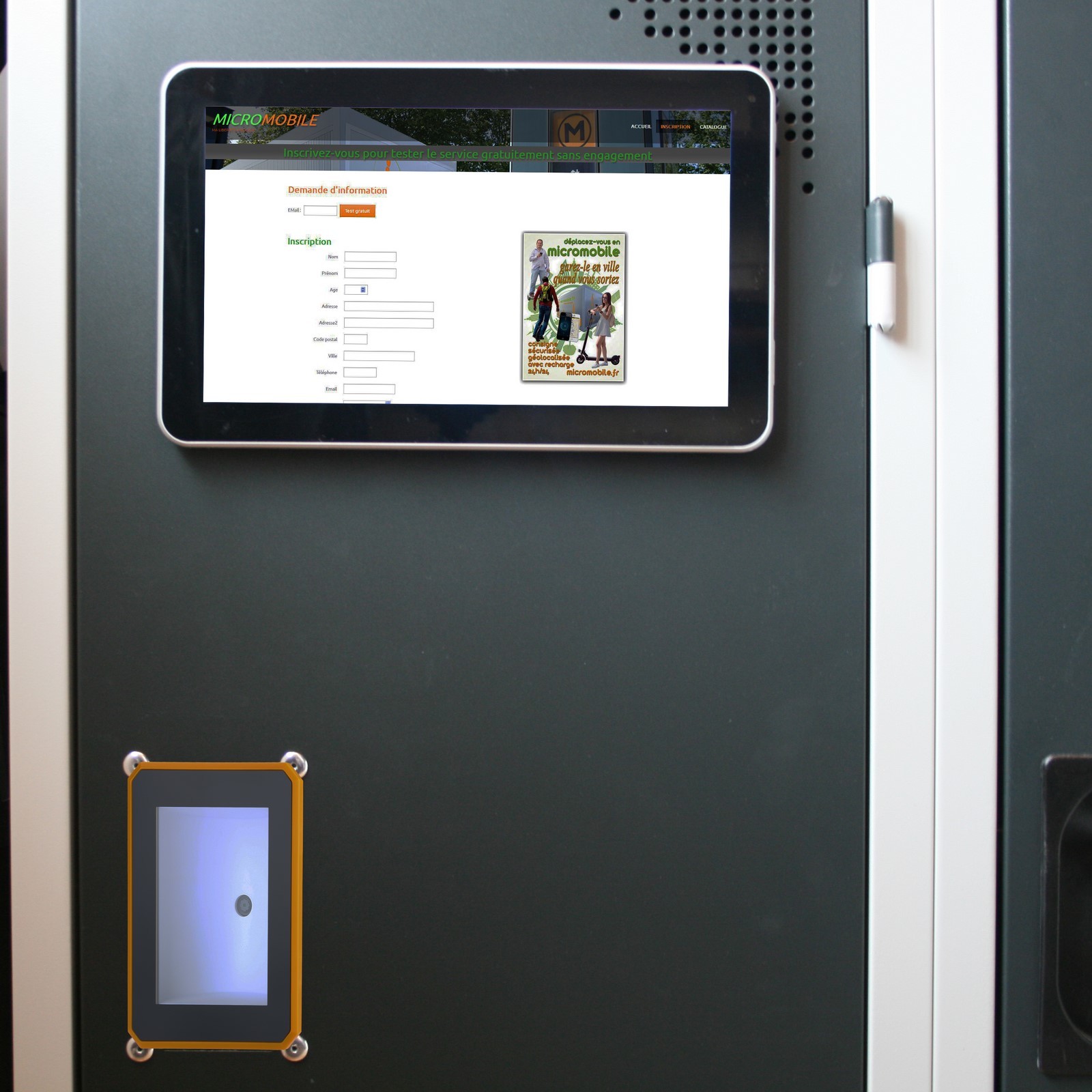 Un écran de commande intégré au bloc de casiers consignes permet de gérer l'inscription et l'identification avec des droits paramétrés.